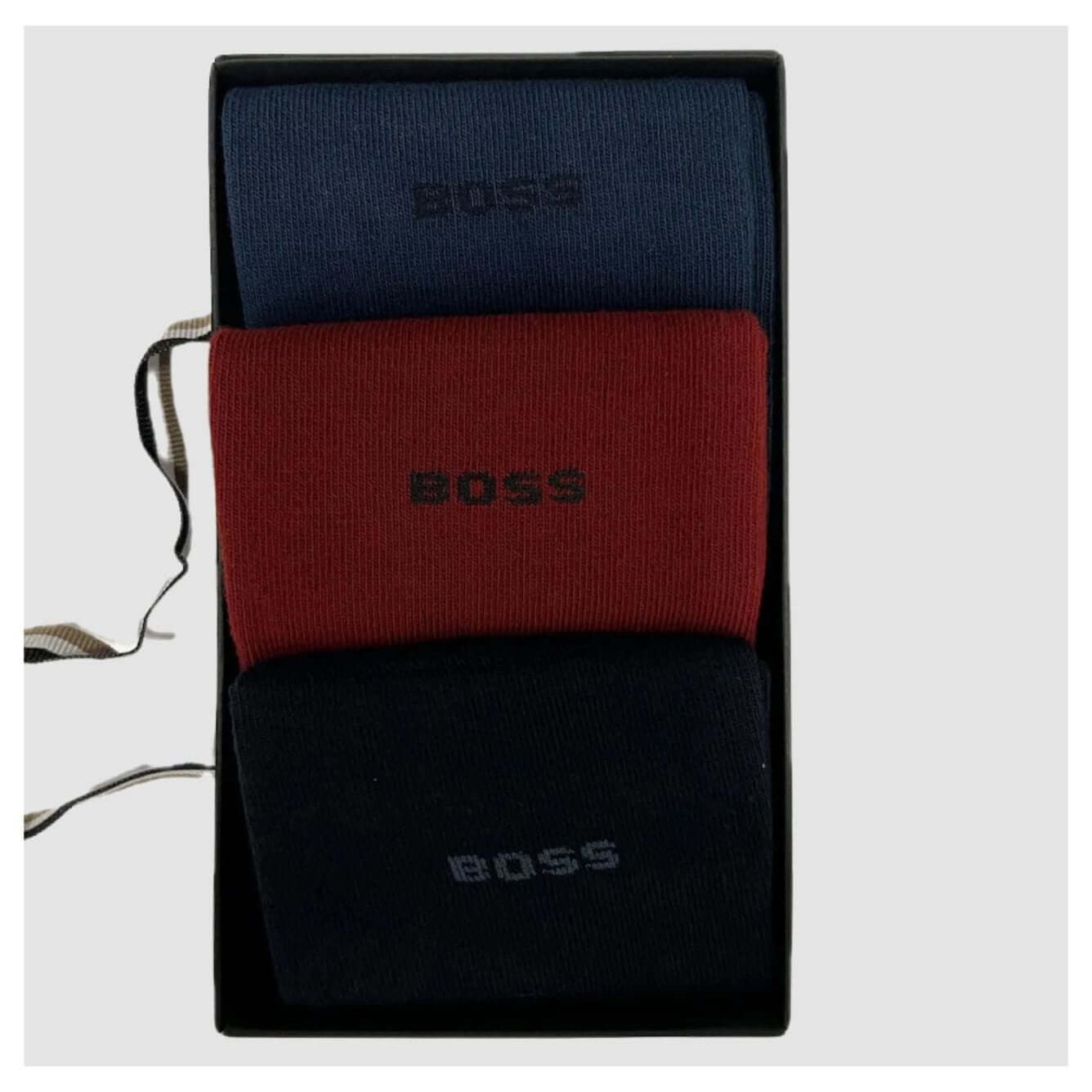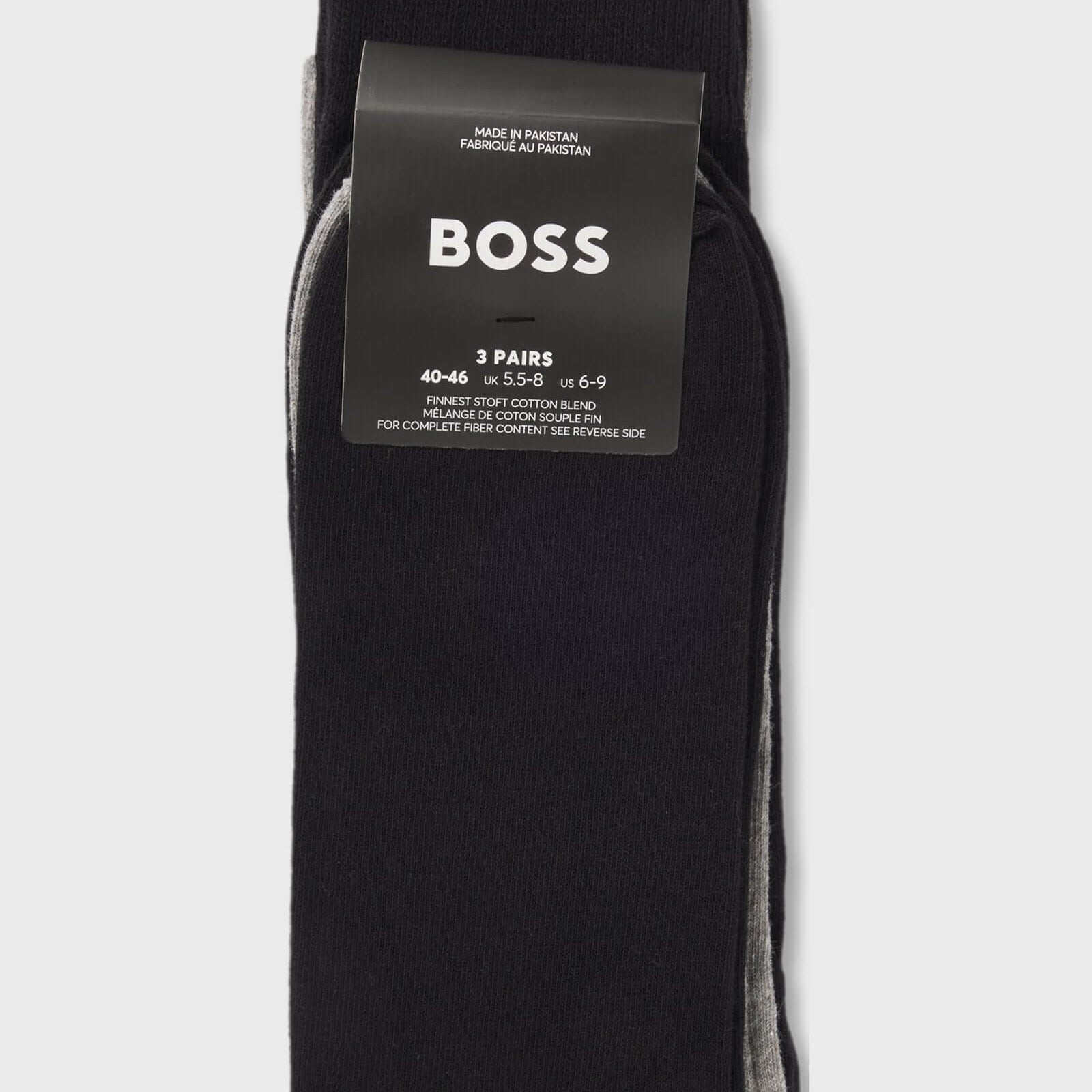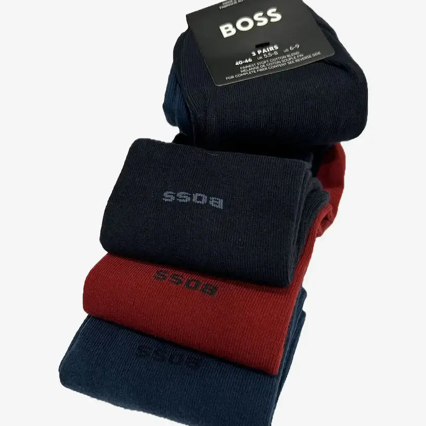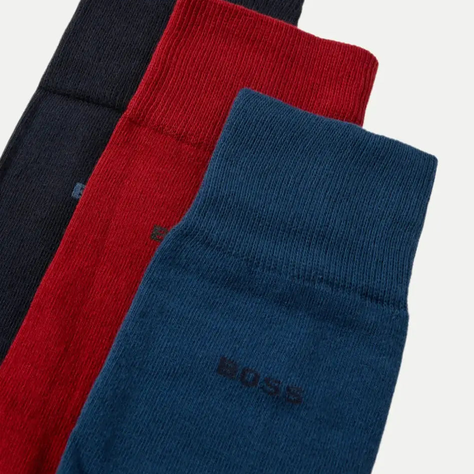 BOSS 3 Pack Cotton Rich Logo Socks – Regular Length Gift Set, Size 6-11