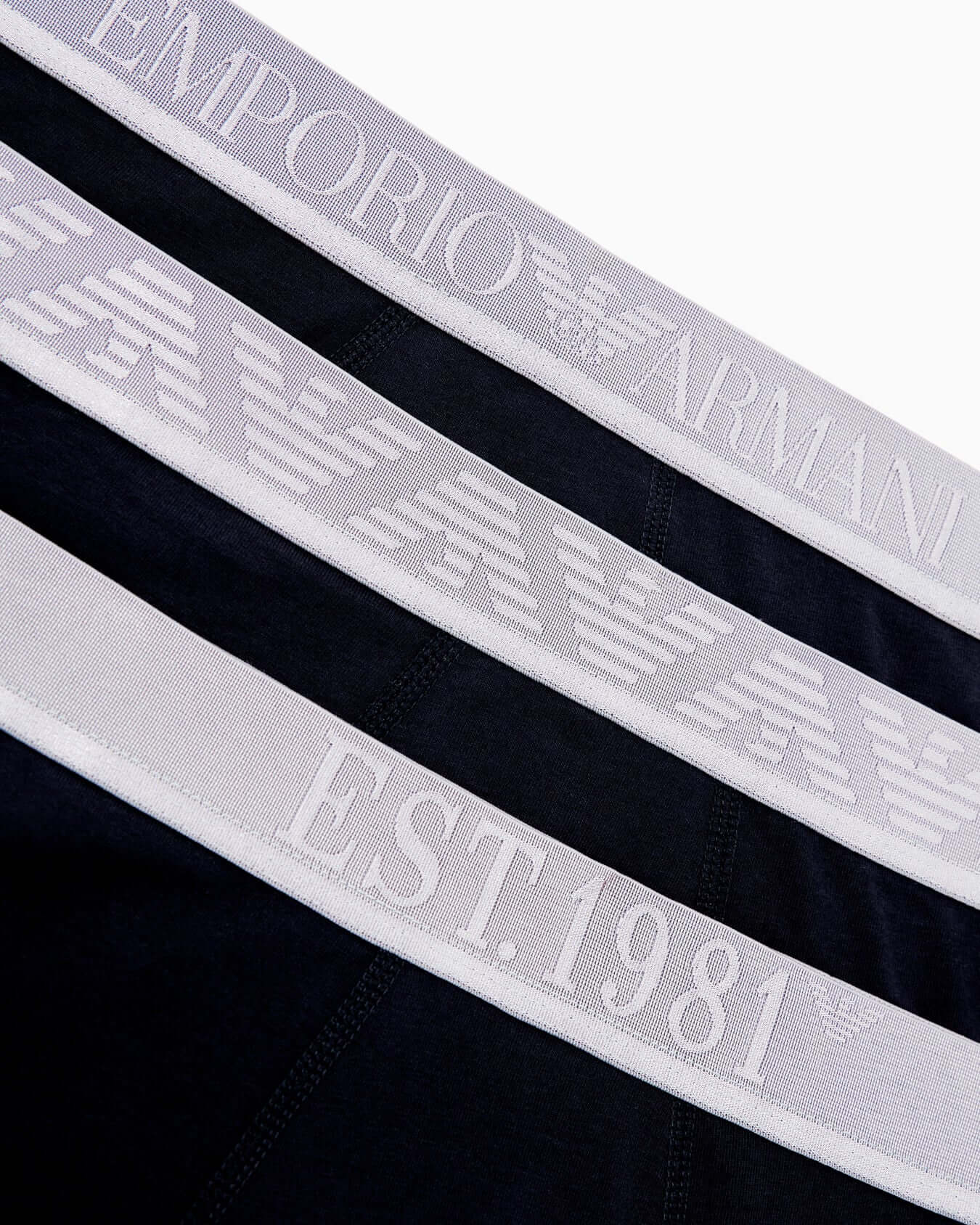 Emporio Armani ASV 3 Pack Organic Cotton Stretch Boxer Briefs – Shiny Logo Waistband