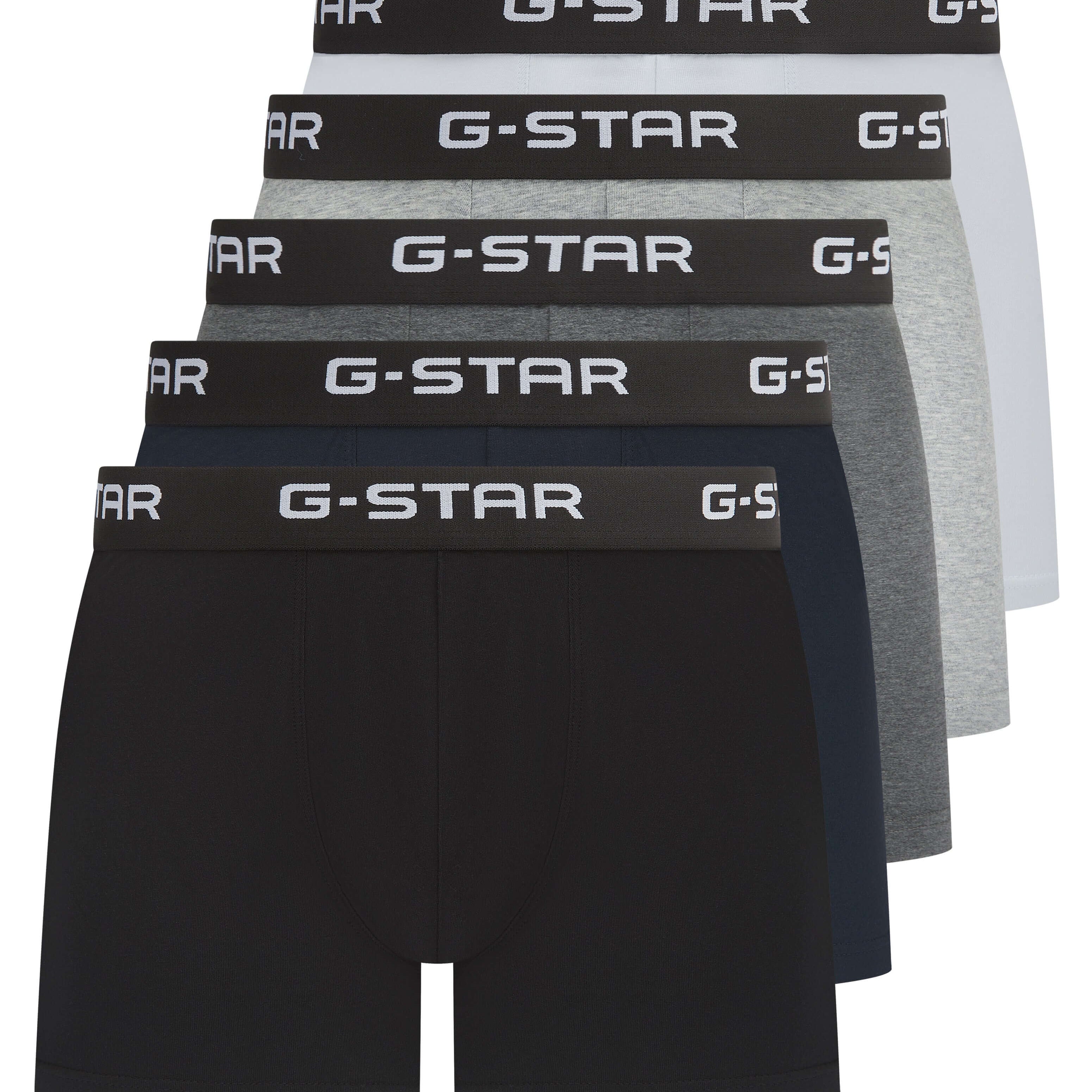 Discover the G-Star Menswear Collection – from underwear and socks to sleepwear and loungewear designed for everyday comfort. Crafted in soft cotton stretch with added elastane, G-Star trunks, boxers, and boxer briefs deliver a flexible fit with signature branded waistbands and irritation-free seams.