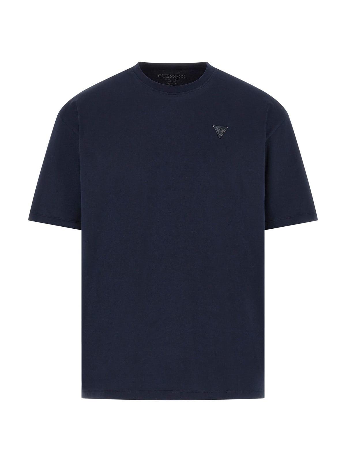 Featuring a classic crew neckline and short sleeves, the design is finished with a small GUESS triangle palm logo on the chest for a subtle yet instantly recognisable branded touch. The regular fit offers a relaxed, versatile silhouette that works perfectly on its own or layered under jackets and overshirts.