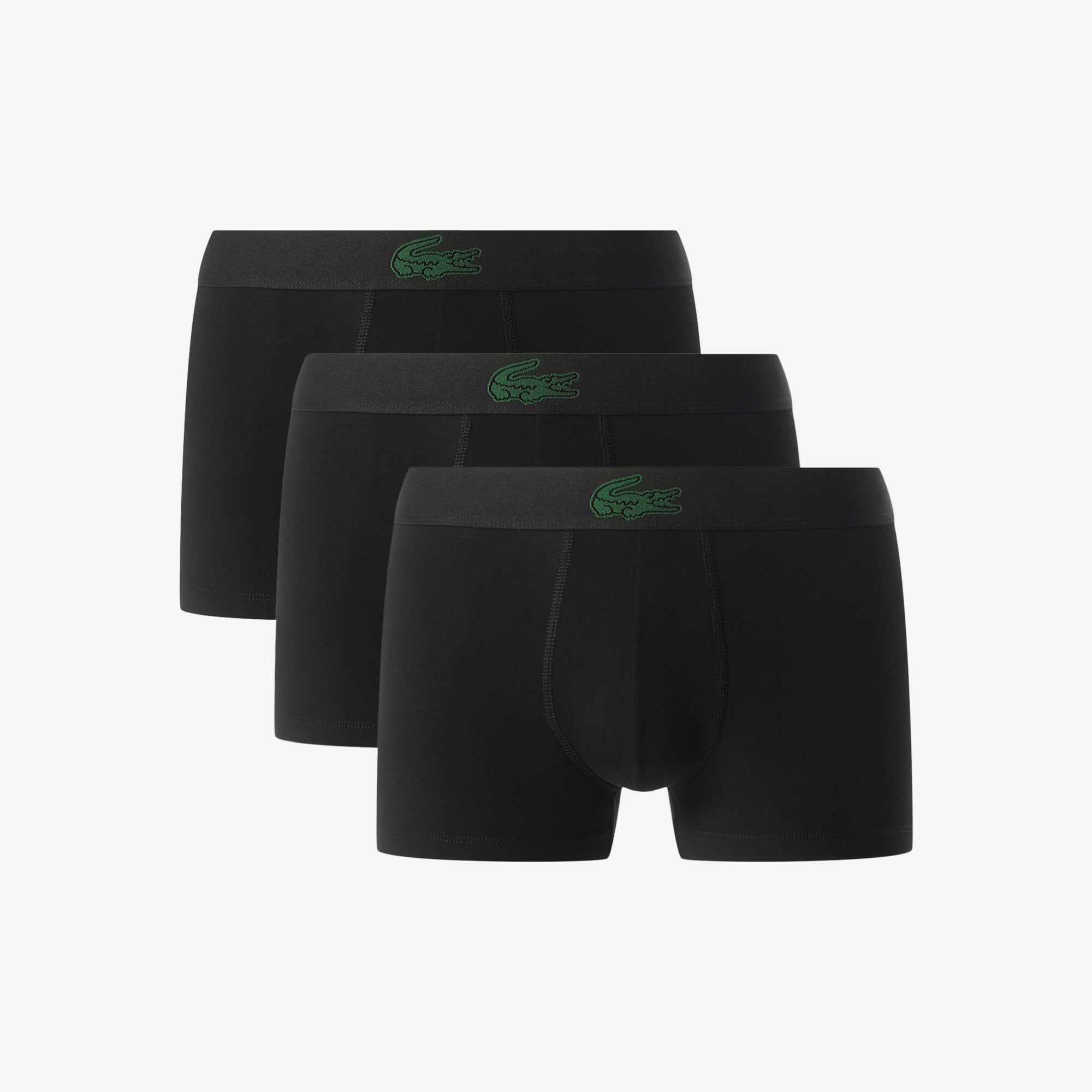 Lacoste Men’s 3-Pack Cotton Stretch Trunks – Crocodile Logo Waistband