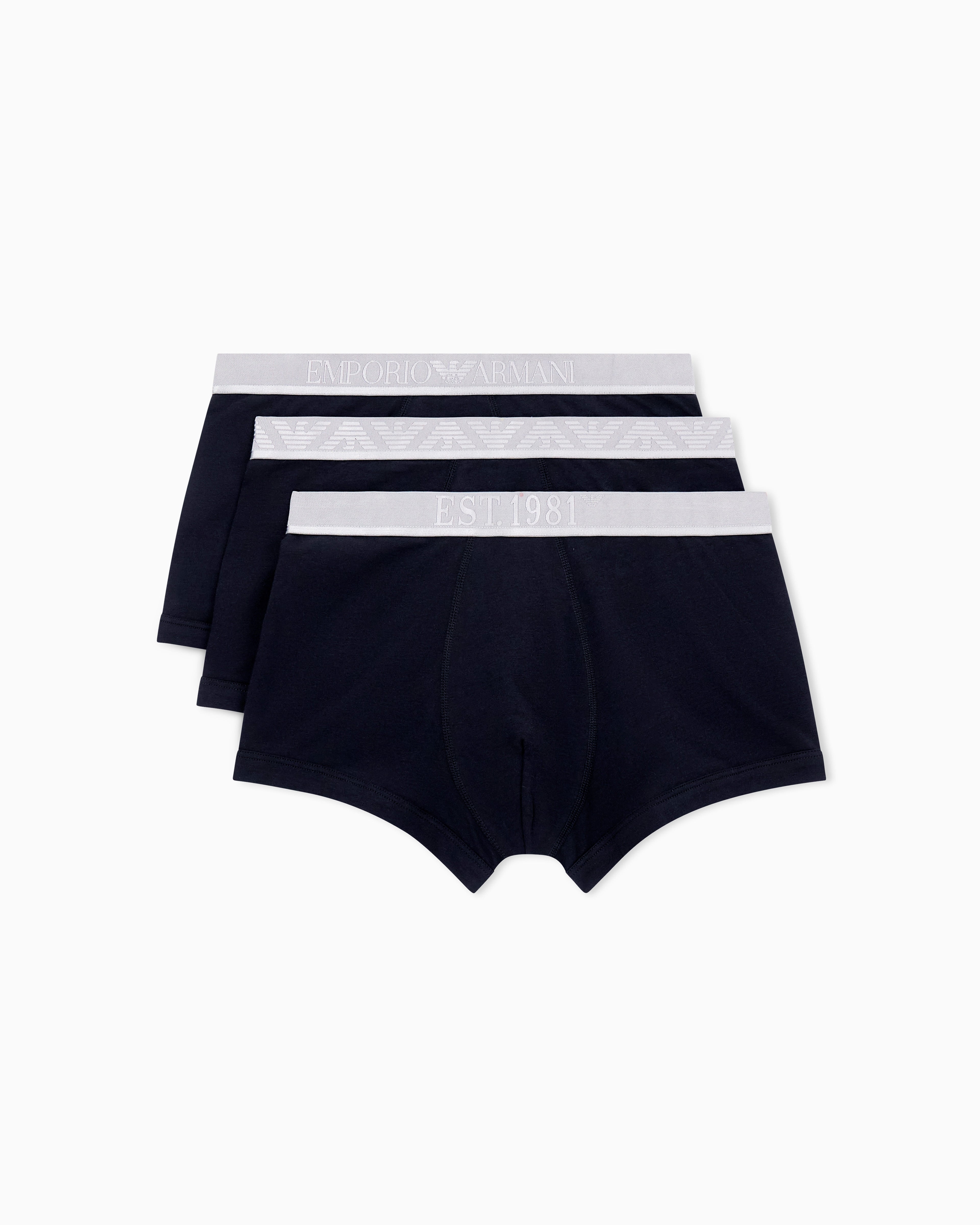Emporio Armani ASV 3 Pack Organic Cotton Stretch Boxer Briefs – Shiny Logo Waistband