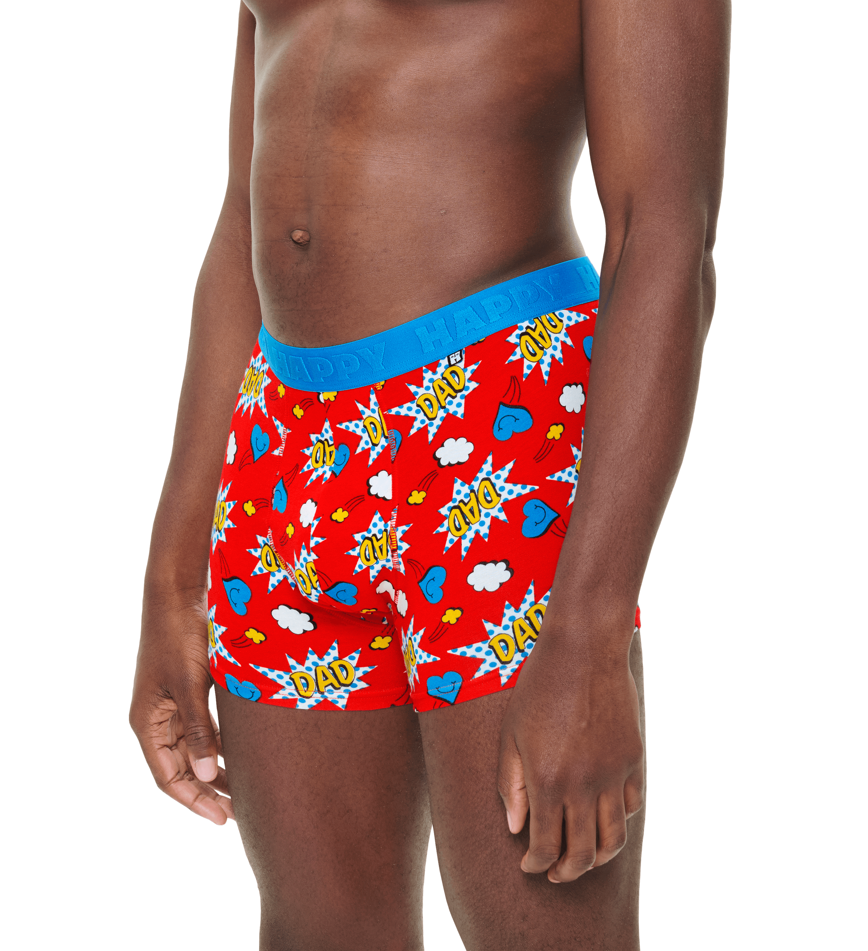 Make him smile with the Happy Socks Super Dad Boxer Shorts — the fun and thoughtful gift that every hero dad deserves. Featuring an all-over Super Dad print on a bold red base with a contrasting light-blue waistband, these boxer trunks deliver a perfect mix of comfort, personality and premium designer style.